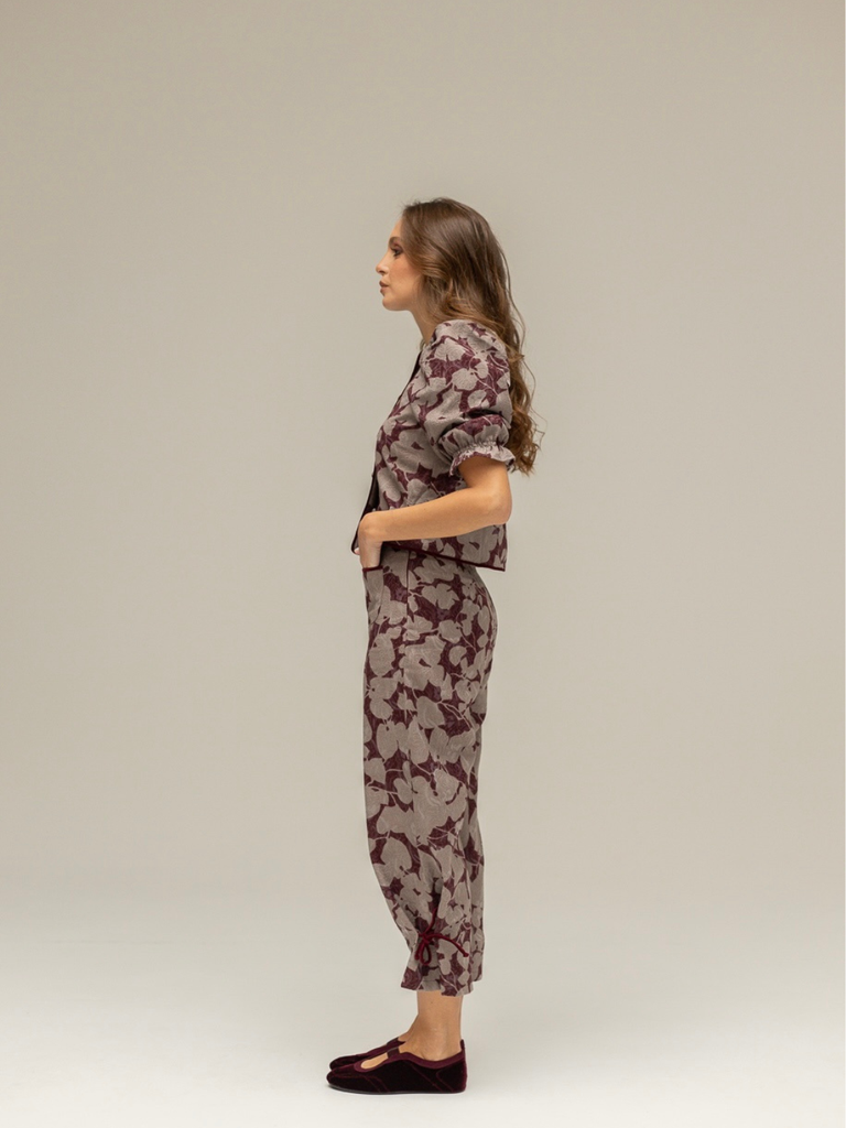 Em todas as coleções existe um art print: a partir de um detalhe das pinturas da criadora da marca (Catarina Macedo Ferreira) desenvolvemos uma estampa única numa peça original.