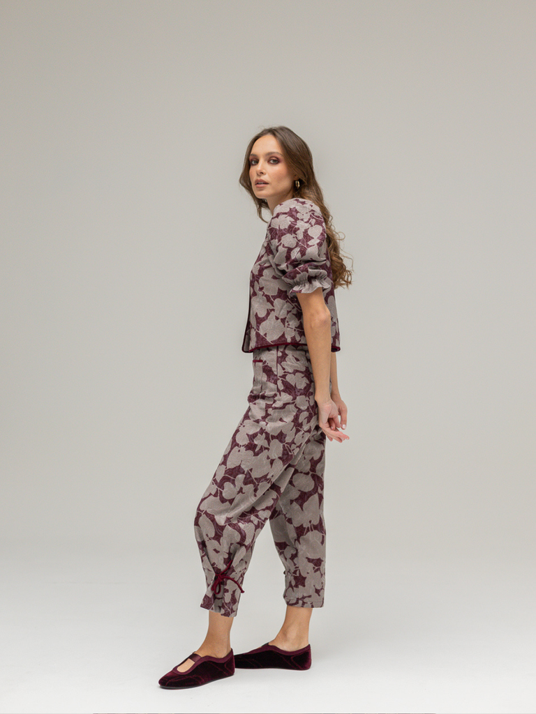 Em todas as coleções existe um art print: a partir de um detalhe das pinturas da criadora da marca (Catarina Macedo Ferreira) desenvolvemos uma estampa única numa peça original.