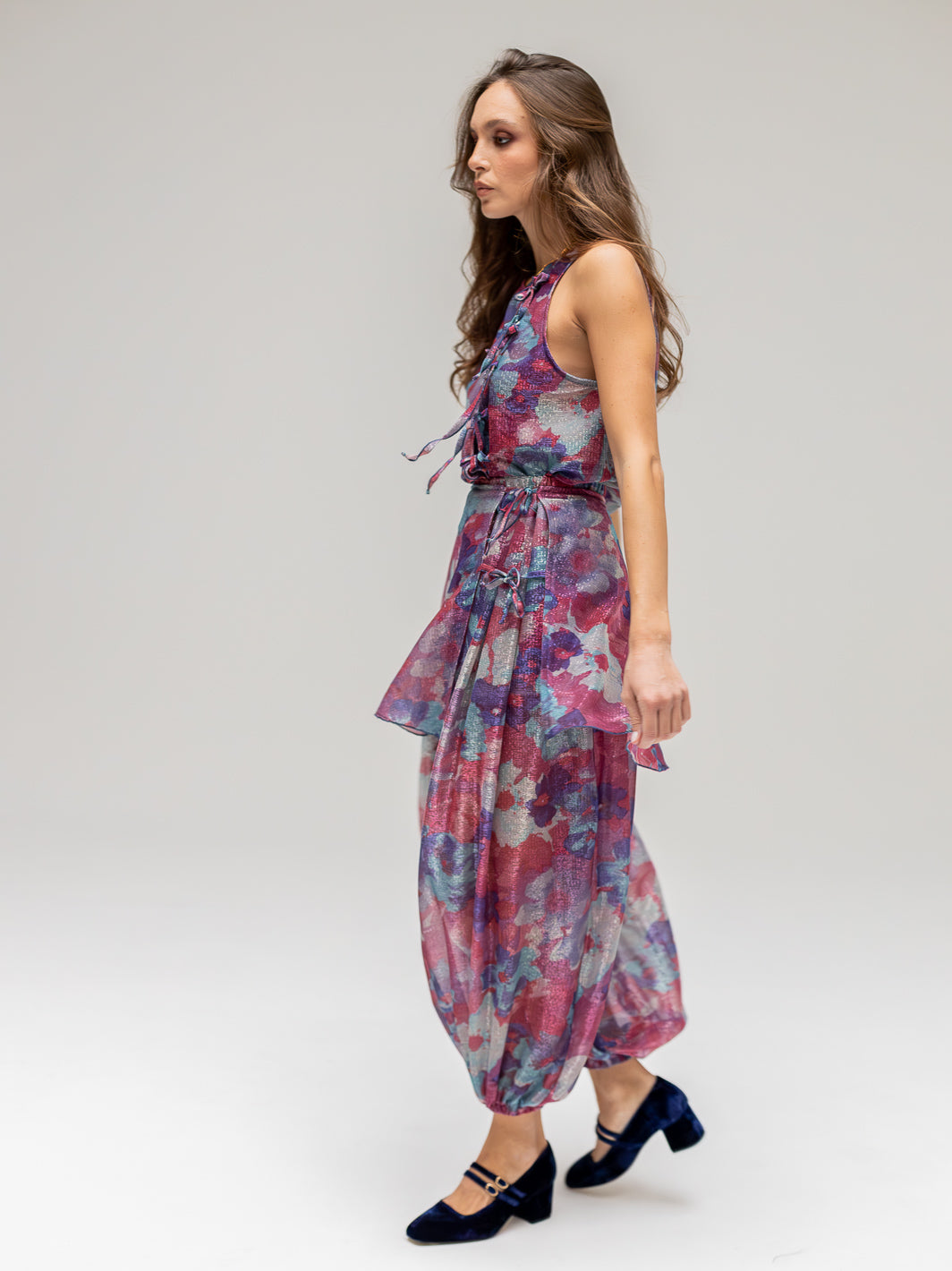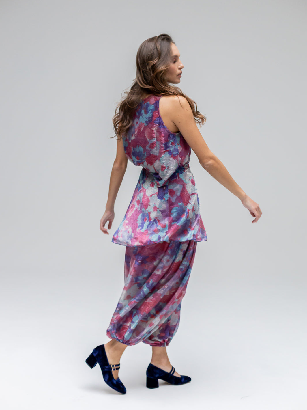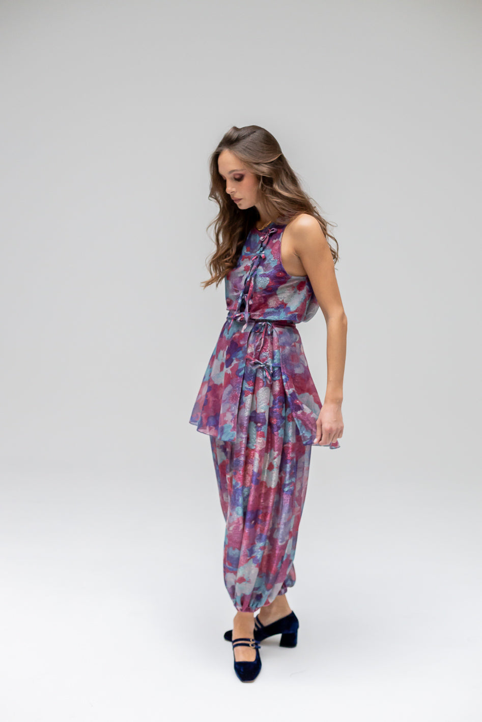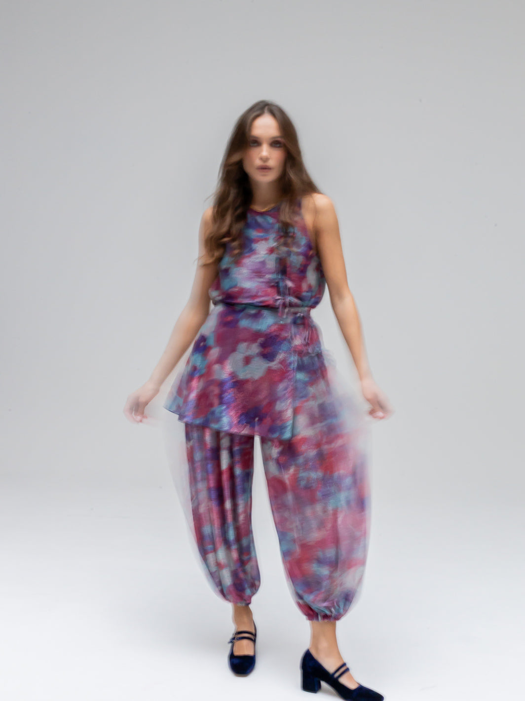 The Mini Saia | Flores functions as a versatile and elegant accessory that perfectly complements any outfit. Its two adjustable side wires ensure a precise fit to your body, while the smooth and sophisticated design adds a touch of class to any look. Pair it with our Boho Flores pants for a special party ensemble.